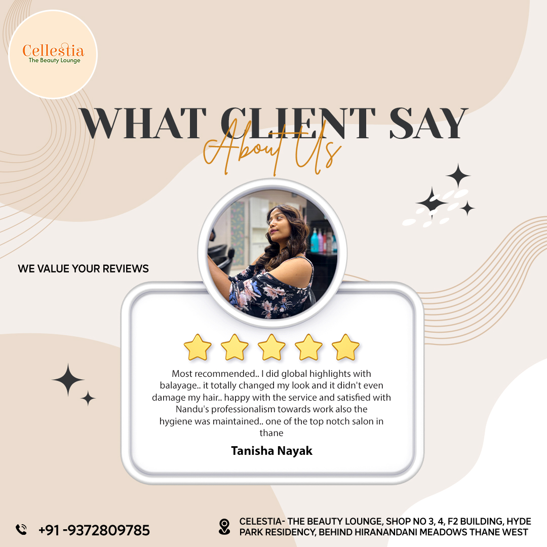 CELLESTIA BEAUTY LOUNGE is a renowned nail and beauty salon founded in 2020 by MrS Apurva Siingh and Mrs. Divya Reddy . We began our journey with a single branch in Thane, and in 2025, proudly opened our second premium outlet in Vashi. With a growing reputation for excellence, we’ve become a trusted name among celebrities such as Disha Pardeshi, Amruta Khanvilkar, Rupali Bhosale, and Mangesh Desai, along with countless loyal clients. We’re excited to announce that new branches are on the way soon!